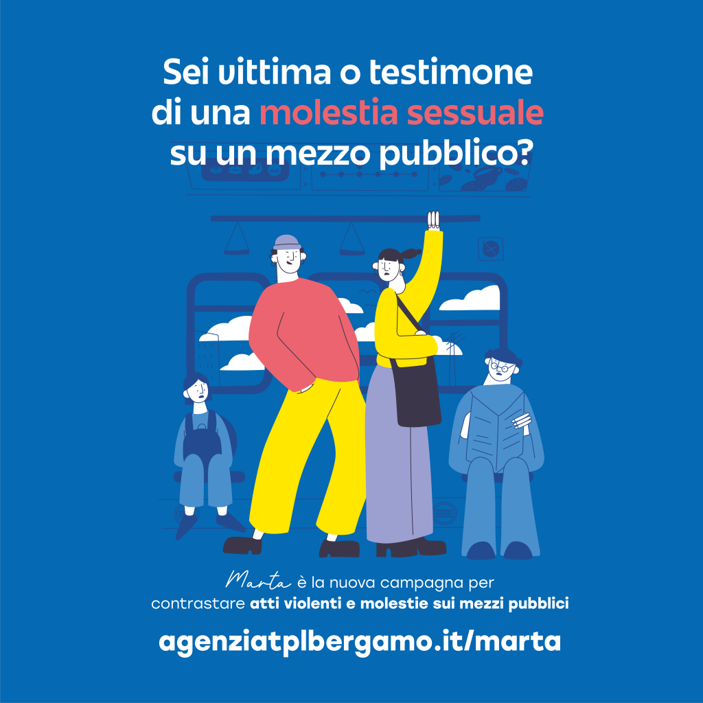 Marta è la campagna per contrastare molestie e atti violenti sui mezzi pubblici promossa da Agenzia del Trasporto Pubblico di Bergamo e Provincia.